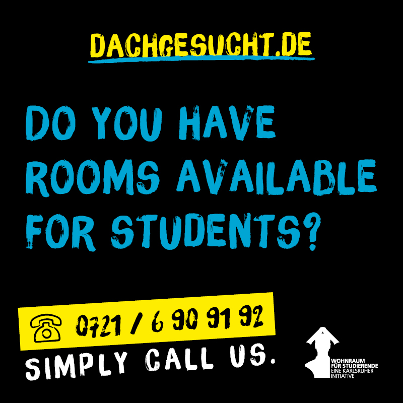 At the same time, this year's campaign, “DACH GESUCHT!” (ROOF WANTED!), aims to highlight ways in which this problem can be tackled together – both for students and landlords. We, the Studierendenwerk Karlsruhe and the